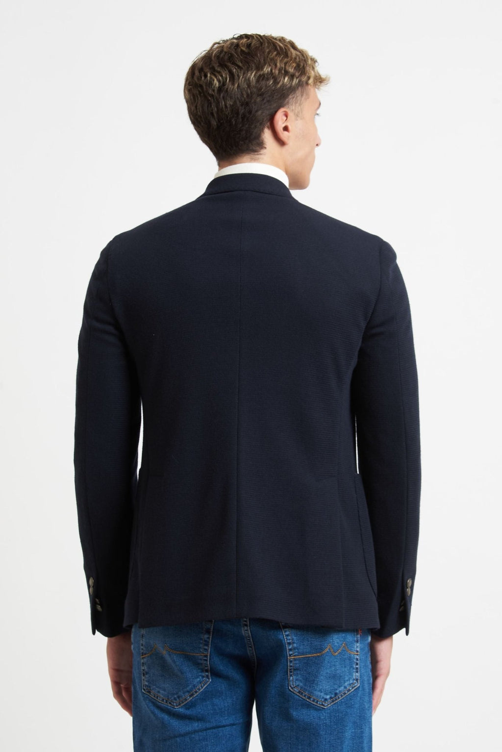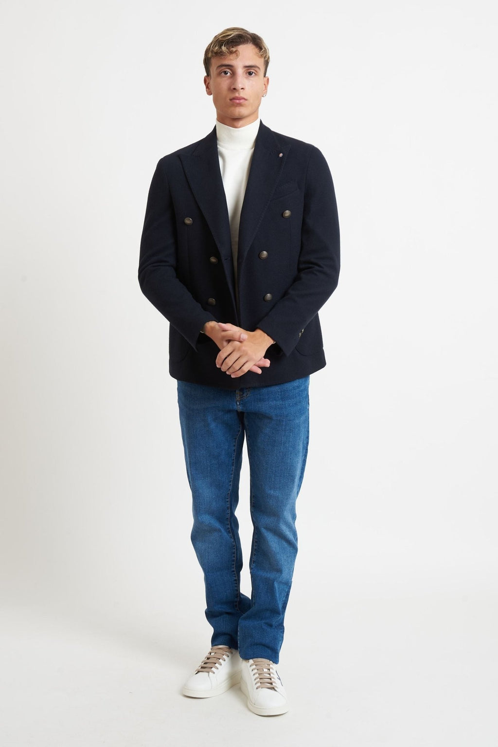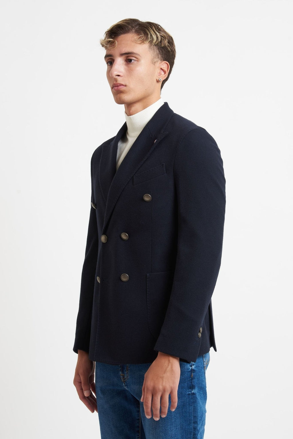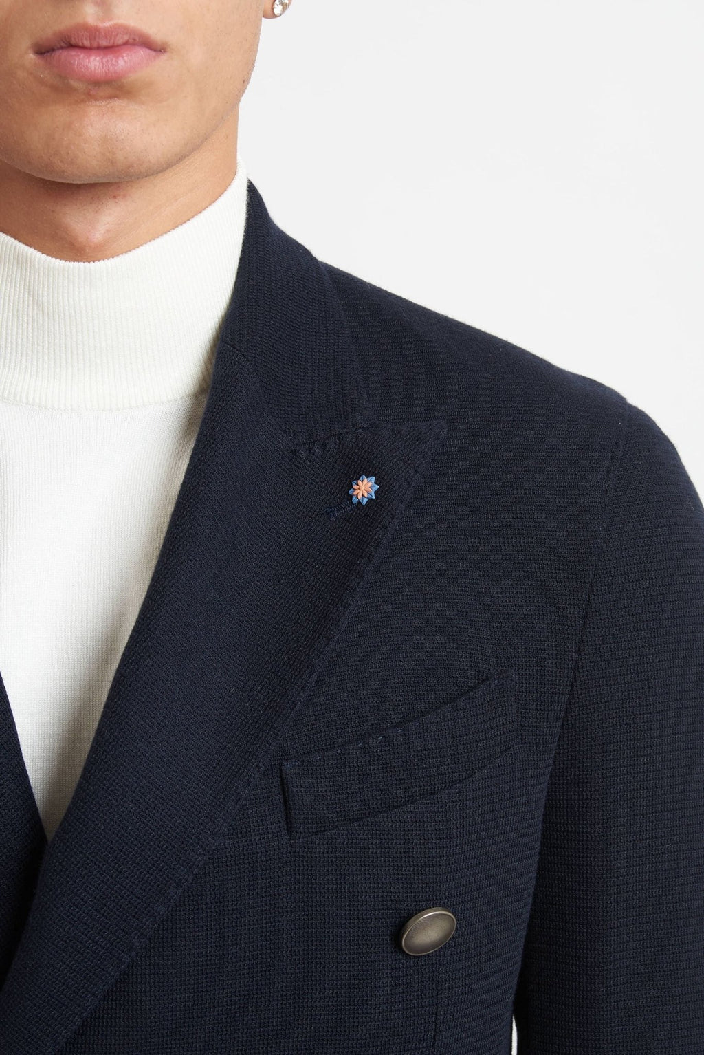 Design: Giacca doppiopetto sfoderata con rever a lancia