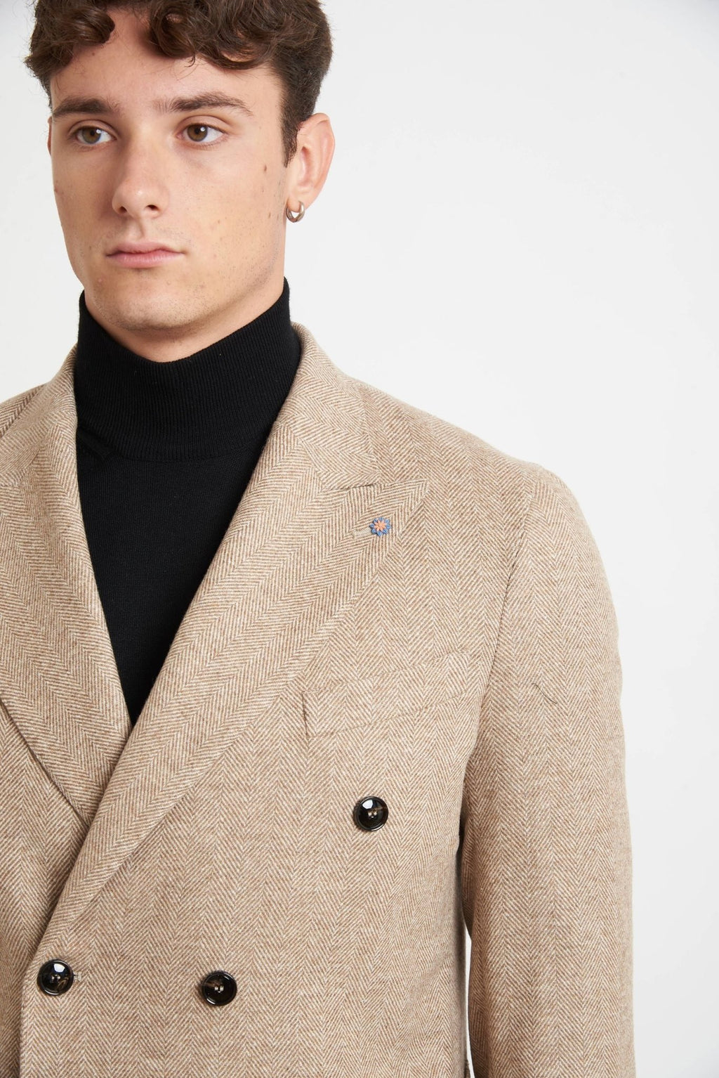 Design: Giacca doppiopetto sfoderata con rever a lancia