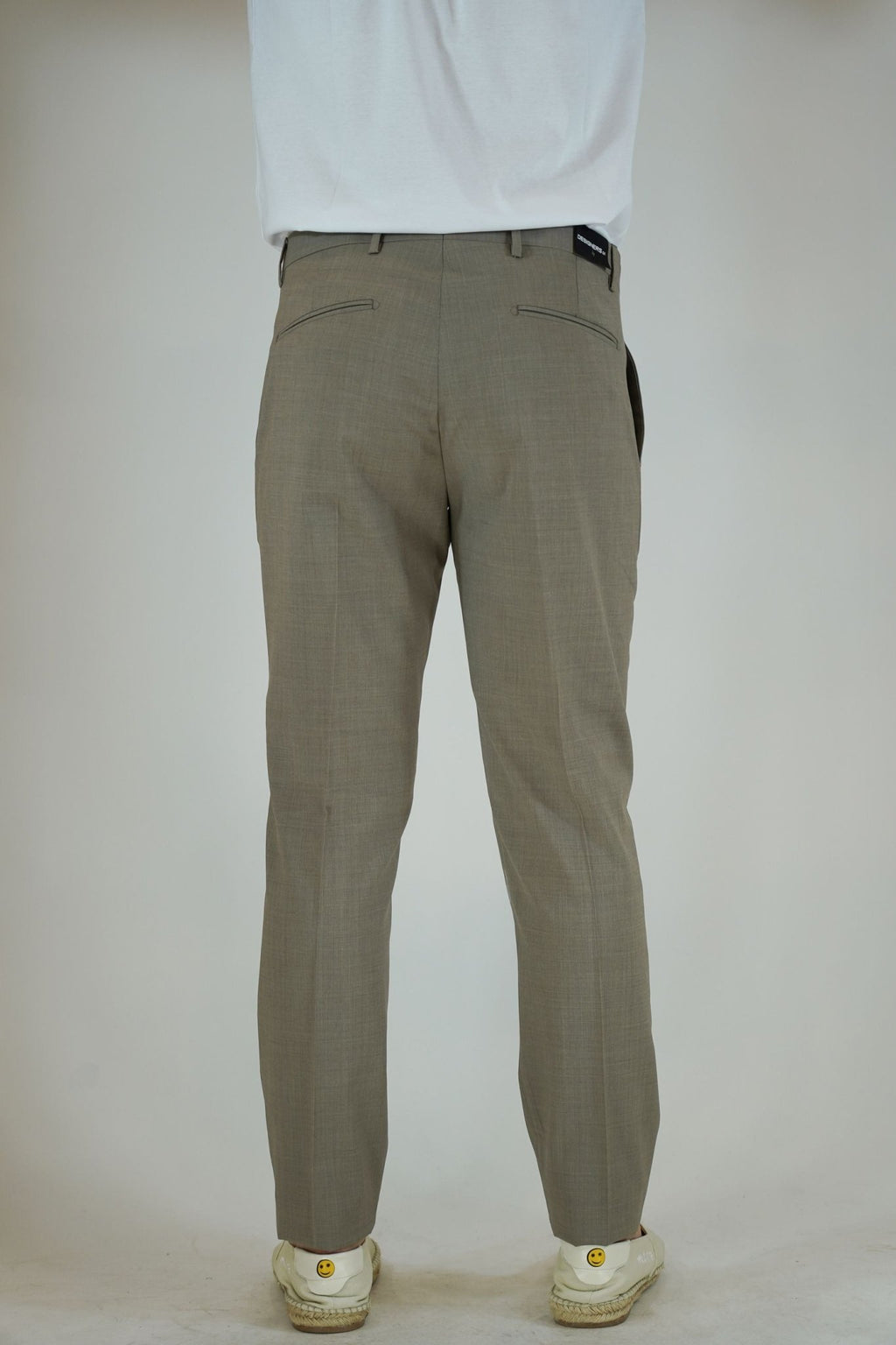 Pantalone con tasca america, tasca a filo sul retro, abbottonatura con gancio e bottone, con risvoltino cucito di 3 cm