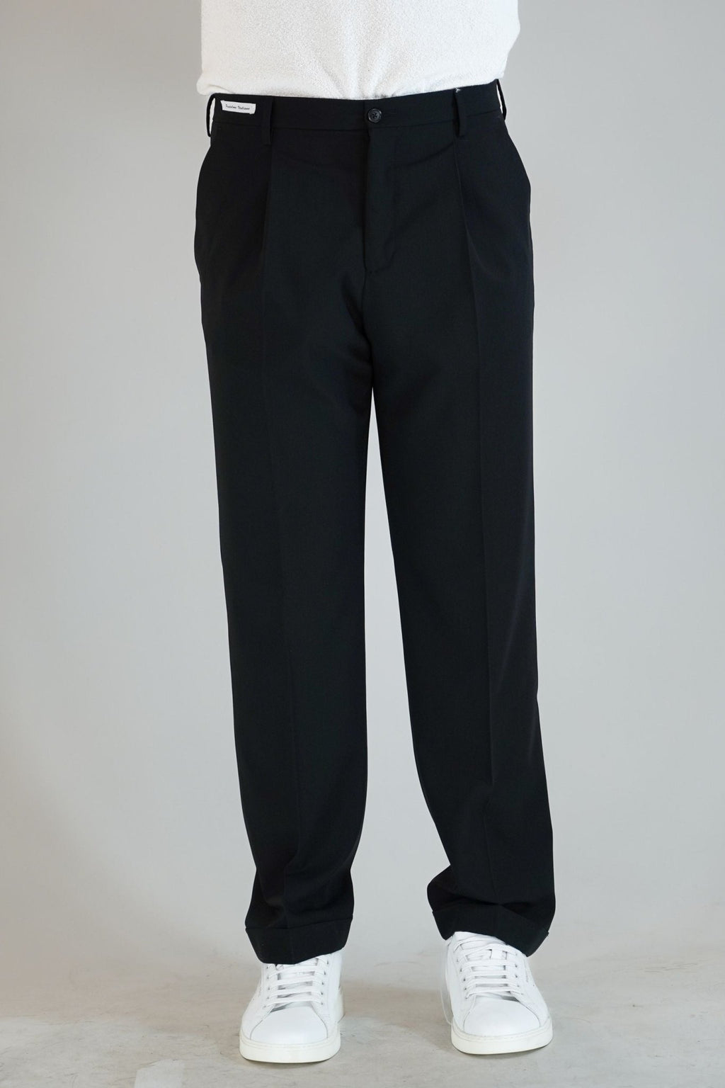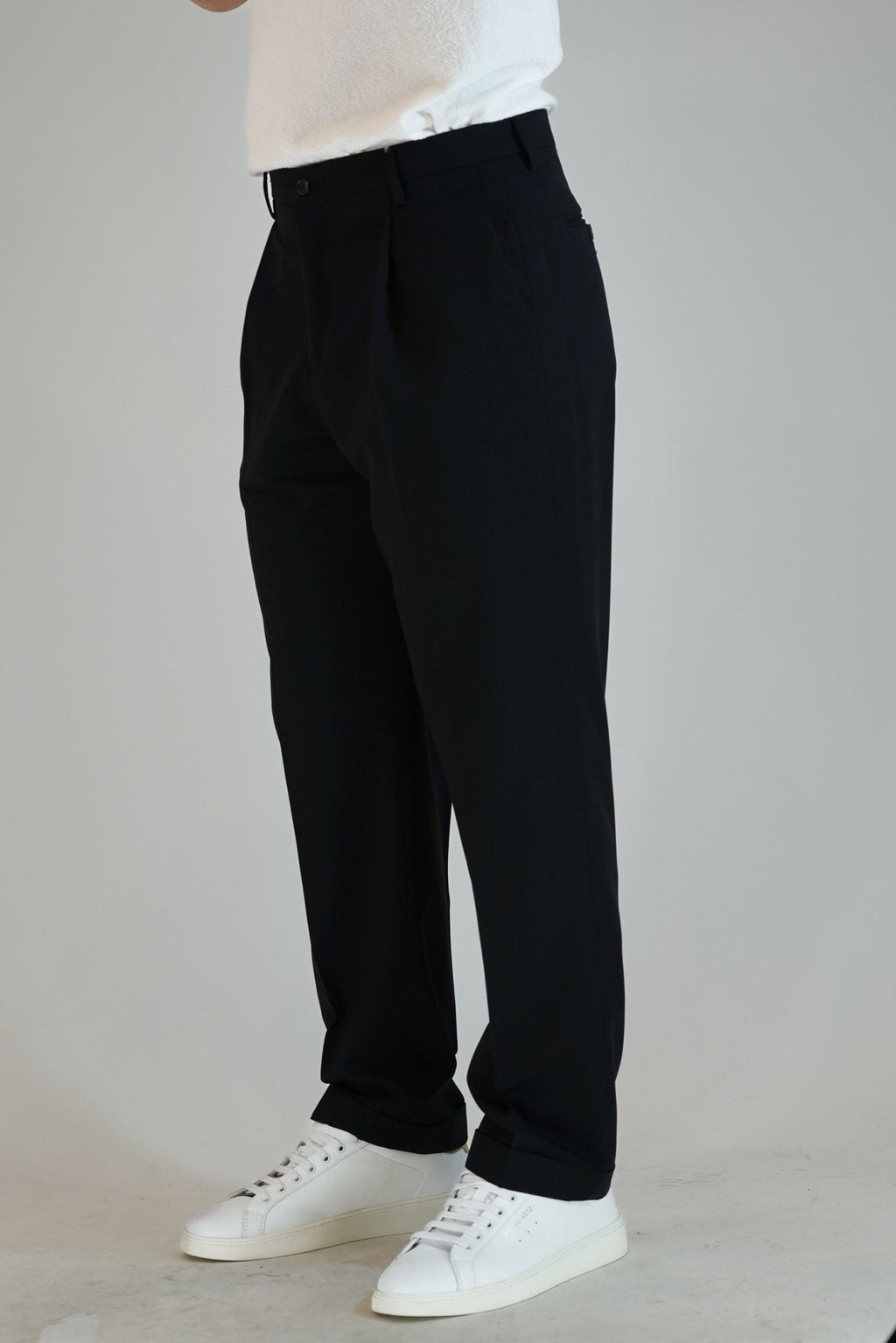 Pantalone con pence , con tasca america, tasca a filo sul retro con bottone, abbottonatura con bottone, con risvoltino cucito di 3 cm. fondo largo