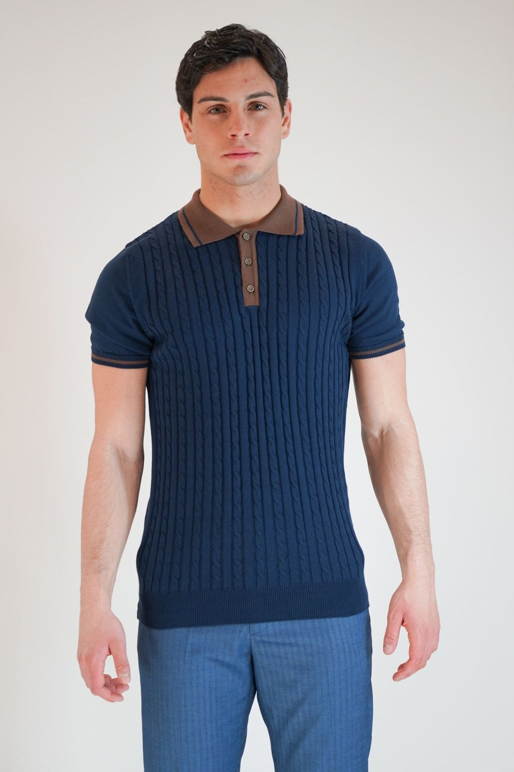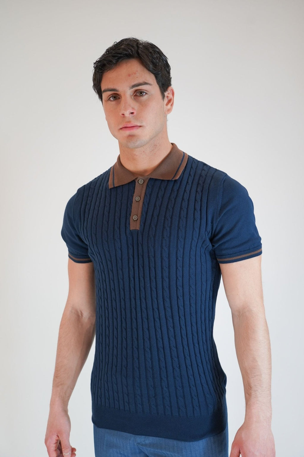 Polo con fantasia treccia sul davanti e con collo, e maniche a contrasto, 3 bottoni