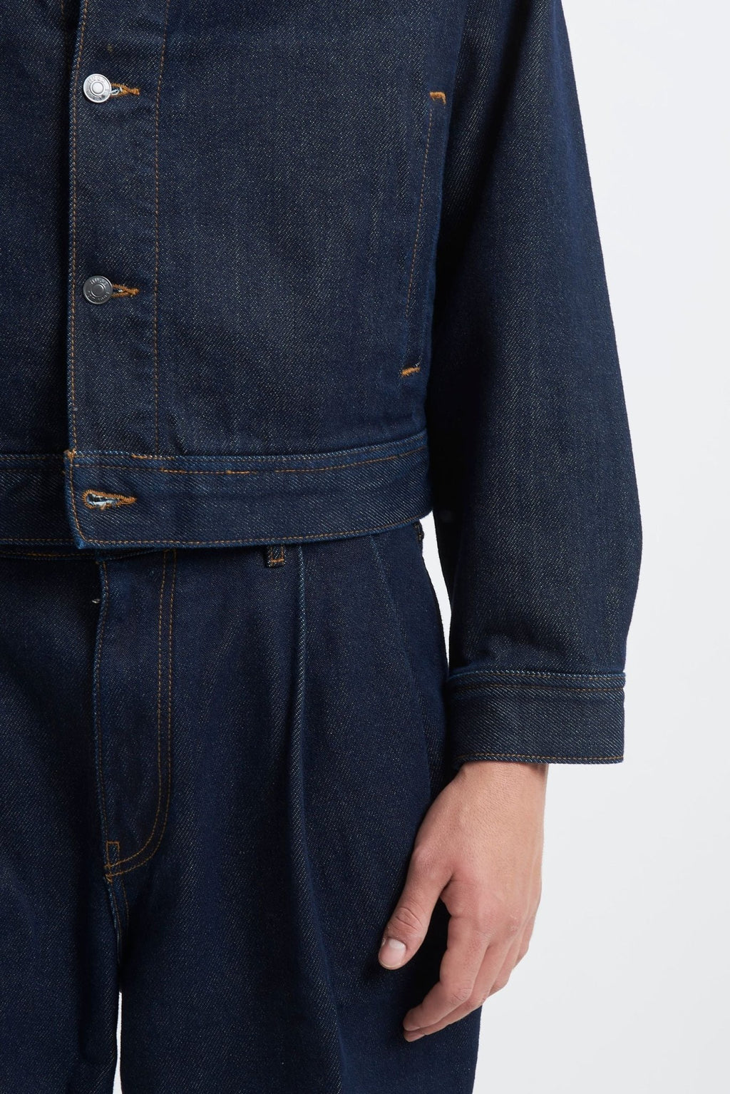 Design: Giubbotto casual in denim con fondo ed elastico in vita