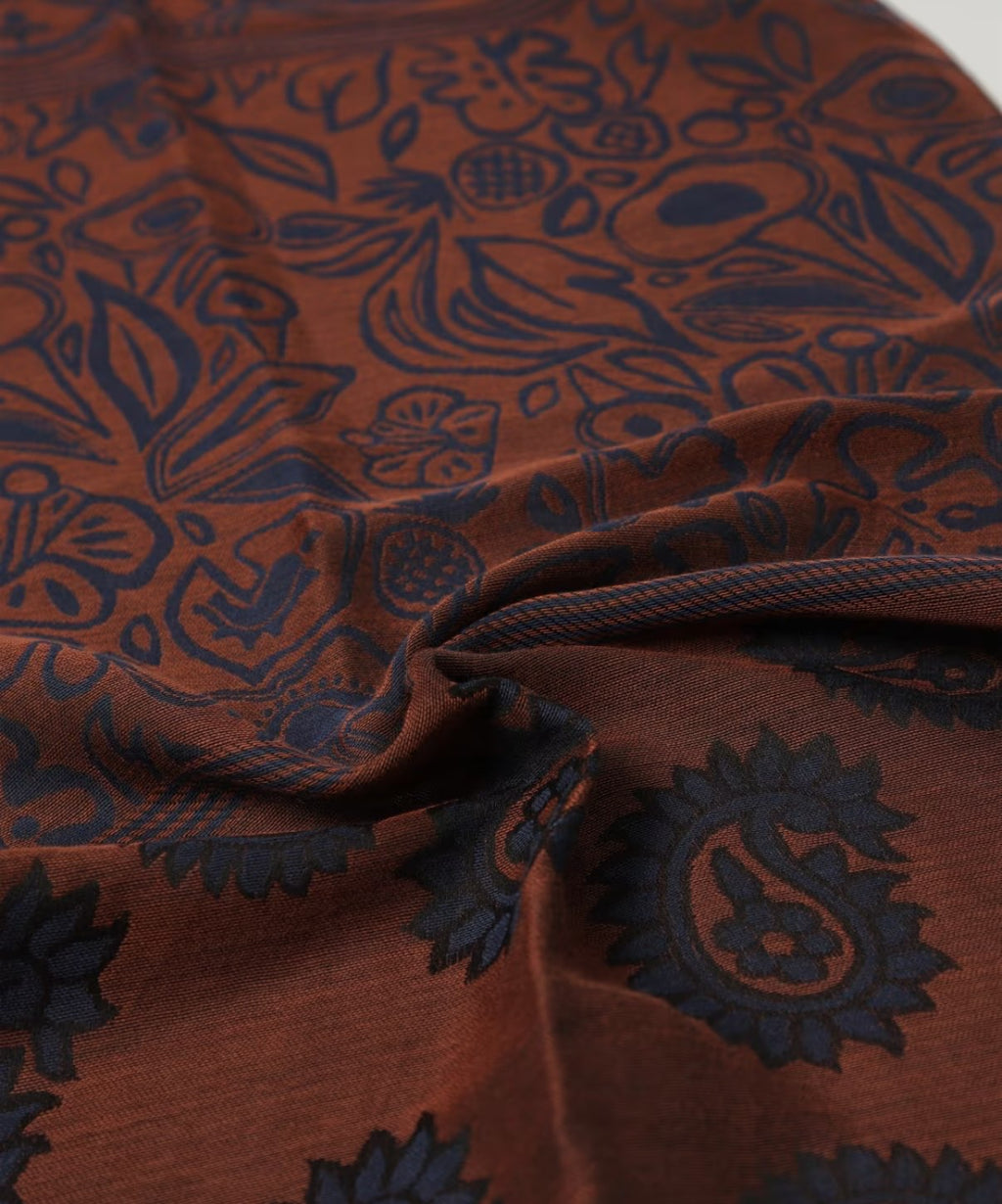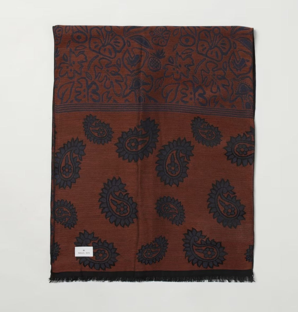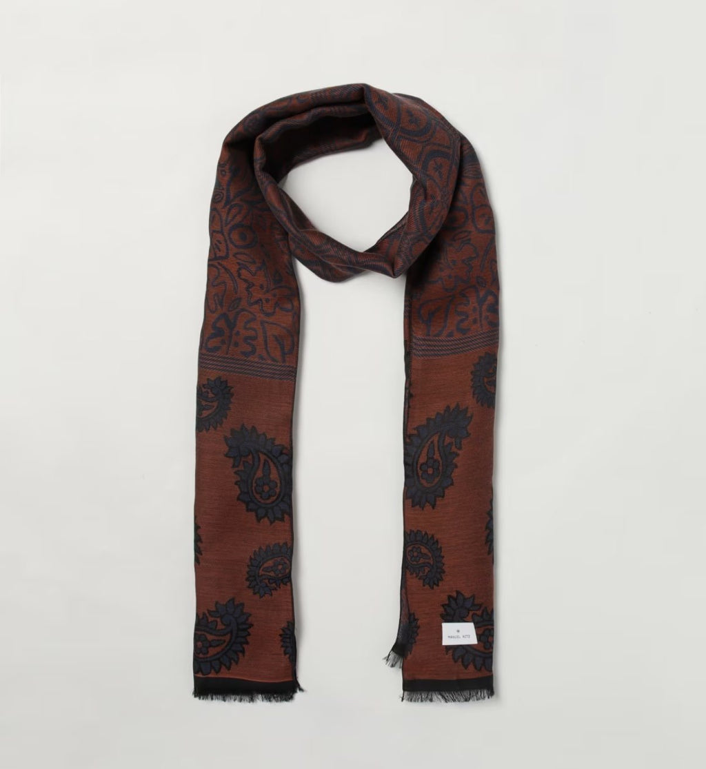 Questa sciarpa in tonalità ruggine con motivo paisley si presta bene ad accenti di colore. Provala abbinata a: