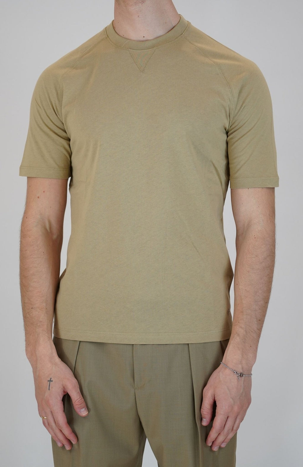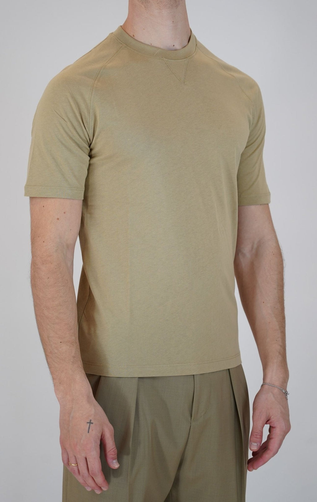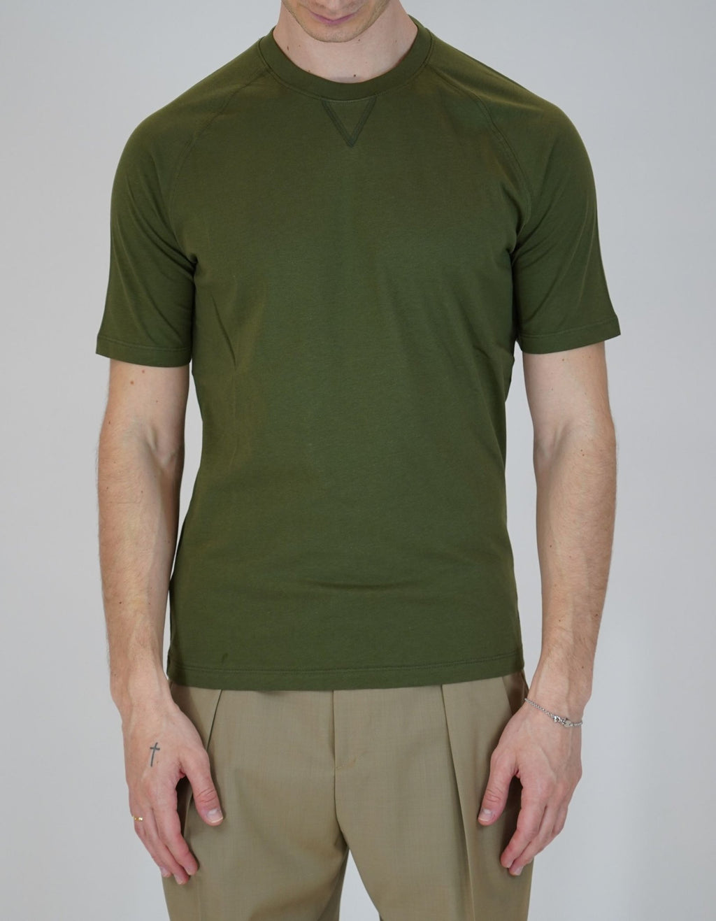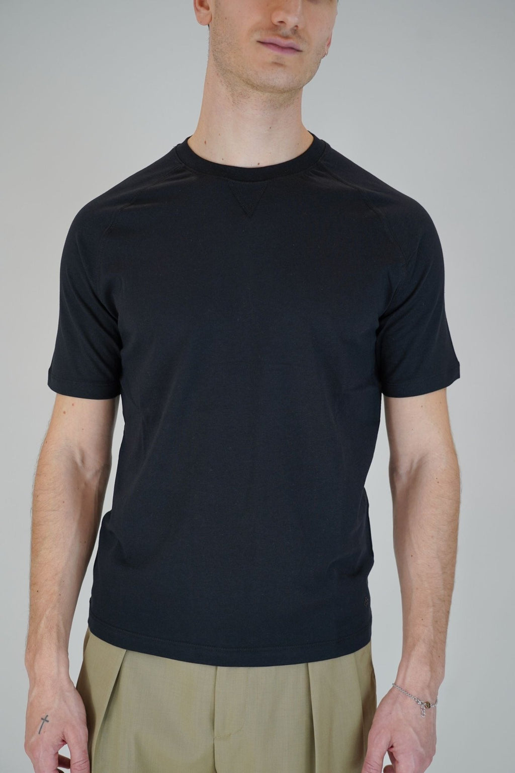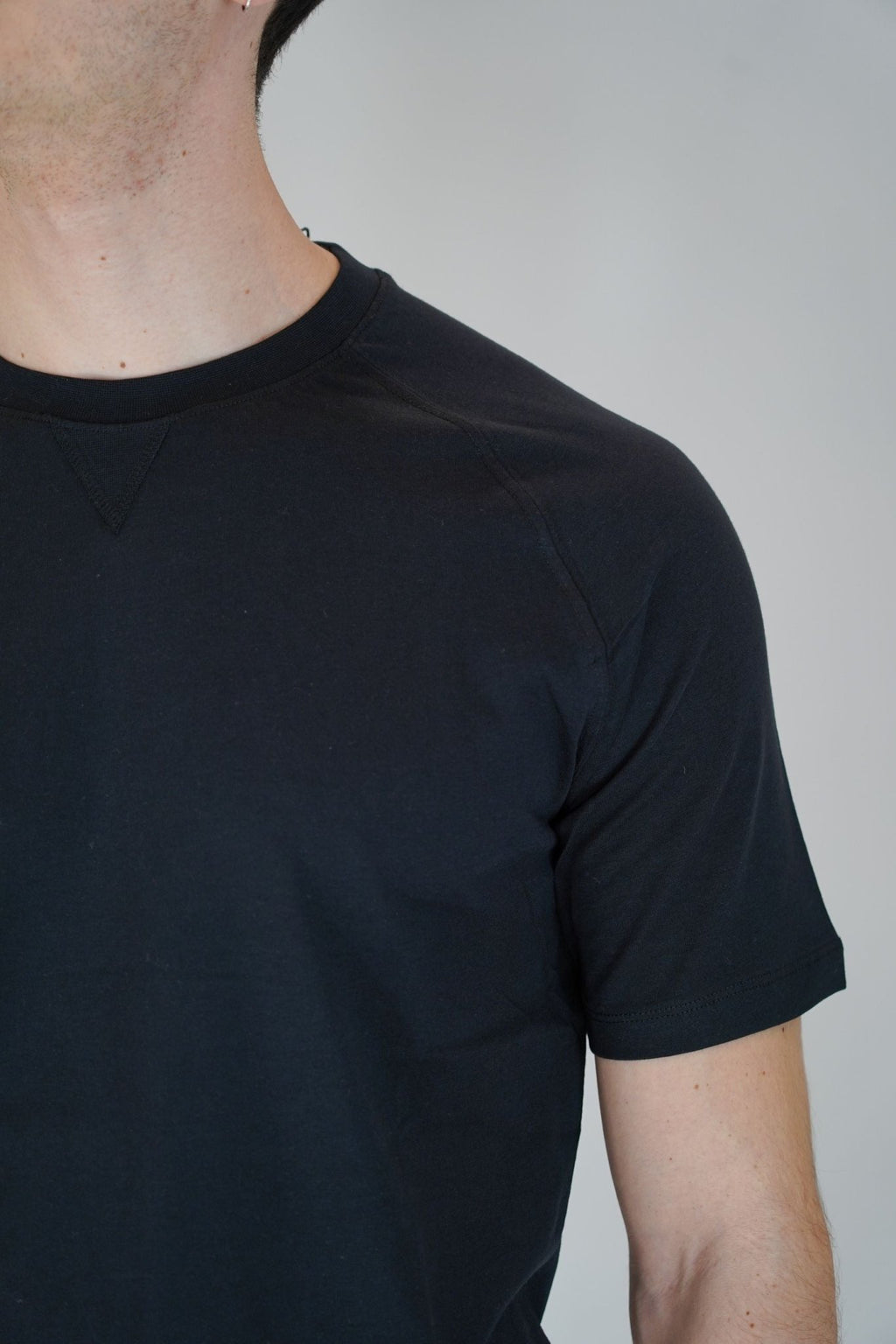 T-shirt girocollo in cotone, modello felpa con triangolo sul collo, con manica raglan elasticizzate