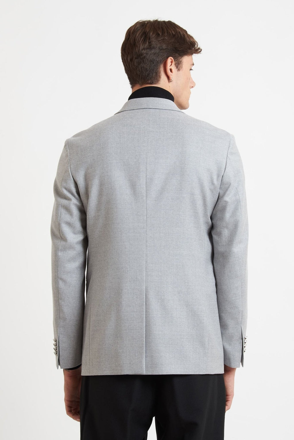Eleganza e stile sartoriale definiscono questa giacca doppiopetto foderata da uomo, modello MOOD, caratterizzata da rever a lancia, due tasche a filo e un taschino frontale, e due spacchi sul retro per maggiore comodità e libertà di movimento. I quattro bottoni ai polsi e le finiture con impunture completano il design con dettagli raffinati.