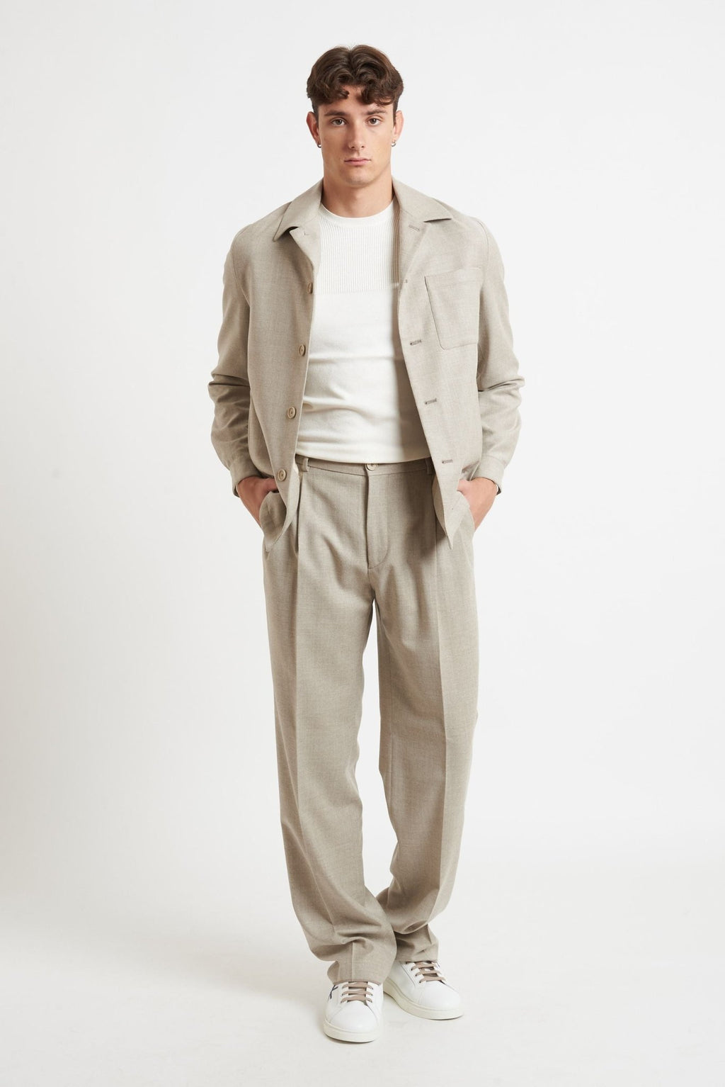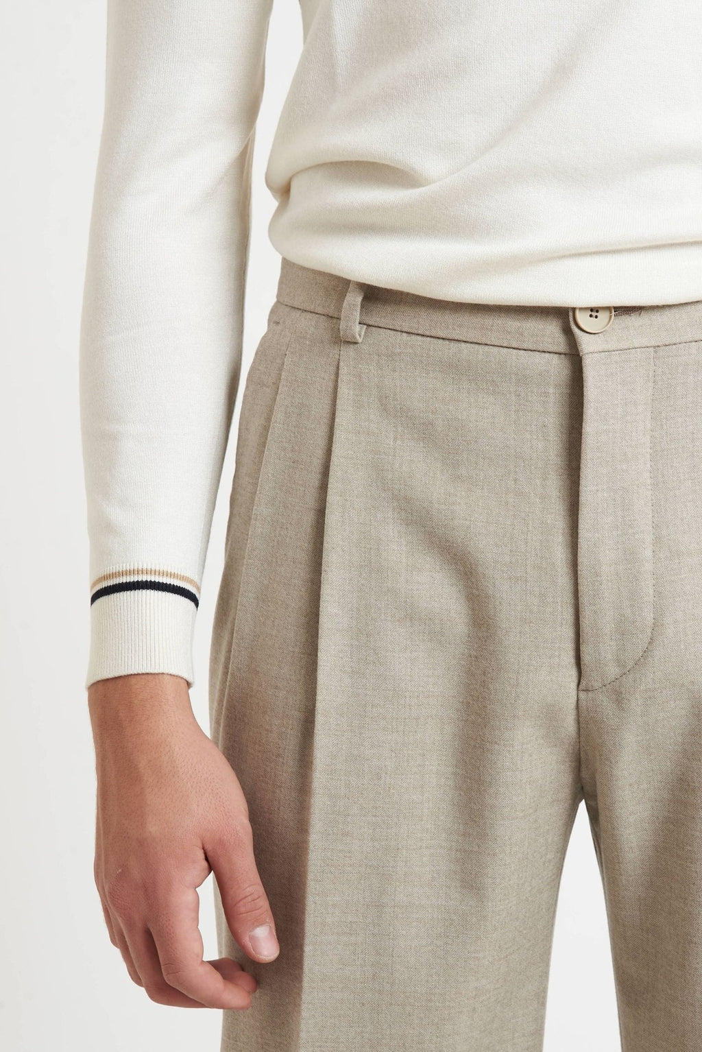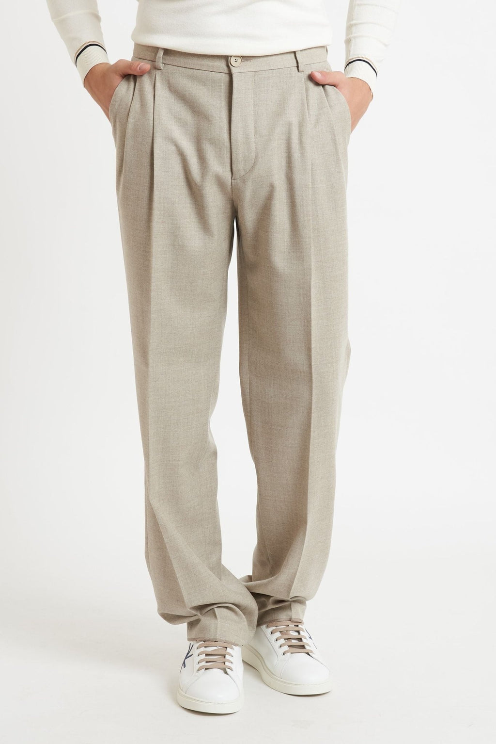 Realizzati in morbido tessuto di lana con un tocco di elastan (99% lana, 1% elastan), questi pantaloni garantiscono calore, comfort ed elasticità per una vestibilità ottimale, perfetti per outfit formali o smart casual.