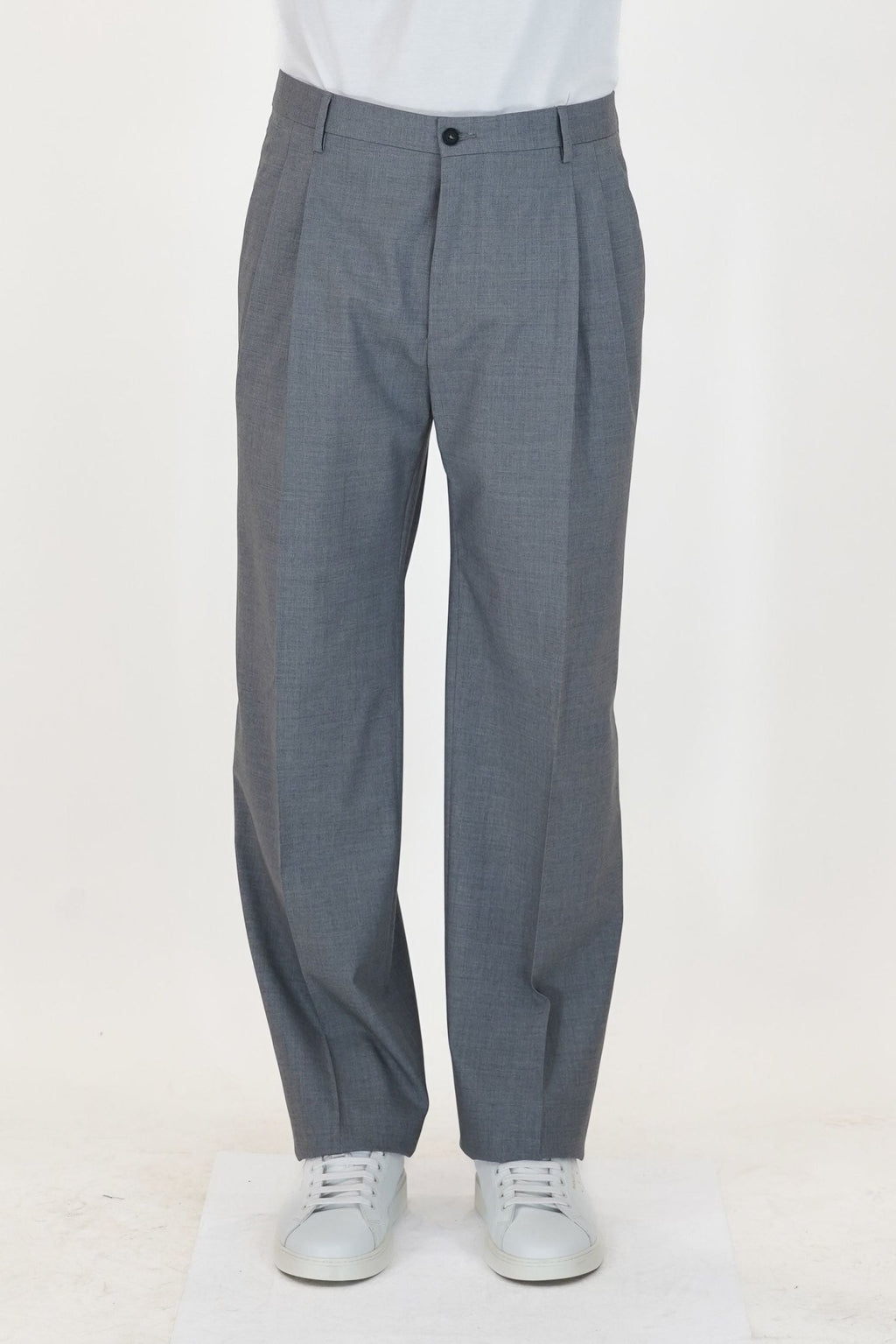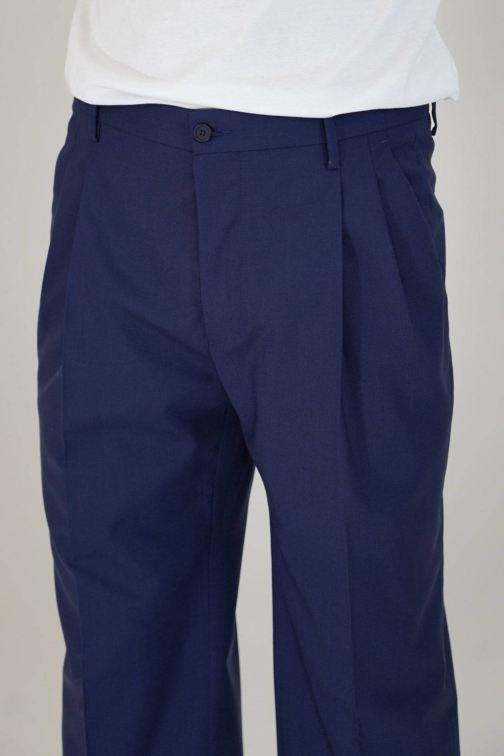 Pantalone baggy fit 2 pence e due tasche america frontali, due a filo con bottone sul retro, passanti in vita in tono, chiusura con zip e bottoni, fondo 23 cm.