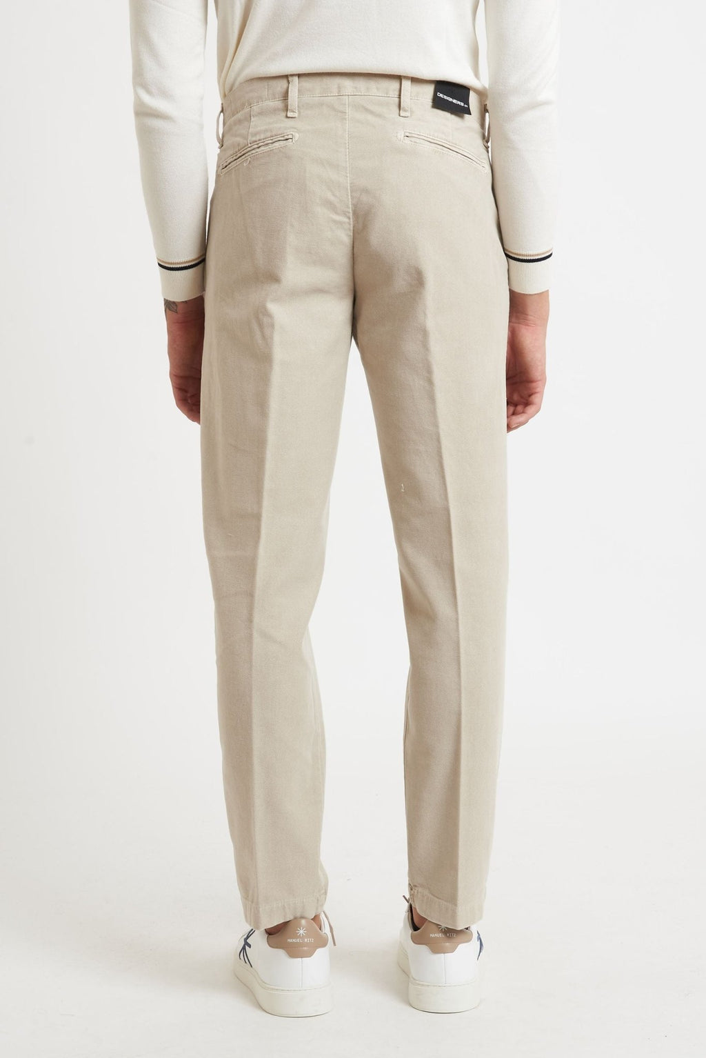 Un capo essenziale e versatile, questo pantalone da uomo classico è caratterizzato da chiusura con cerniera e bottone, due tasche America frontali e una tasca posteriore a friso, perfetto per completare look formali o smart casual.