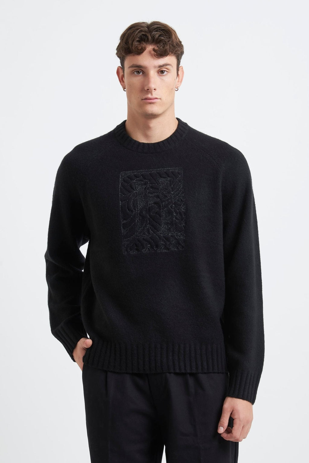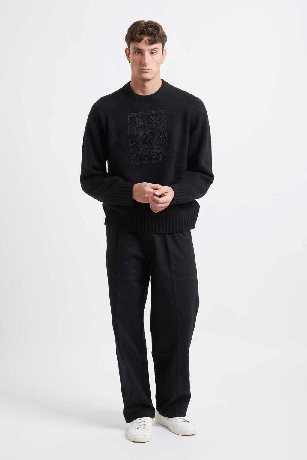 Design: Felpa oversize con fantasia sul petto e manica a forchetta