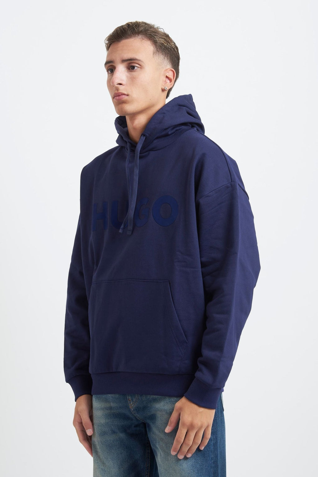 Un capo base casual essenziale, questa felpa con cappuccio oversize da uomo HUGO è realizzata in pesante cotone french terry per comfort e durabilità. Il logo di grandi dimensioni stampato tono su tono aggiunge un dettaglio distintivo e contemporaneo.