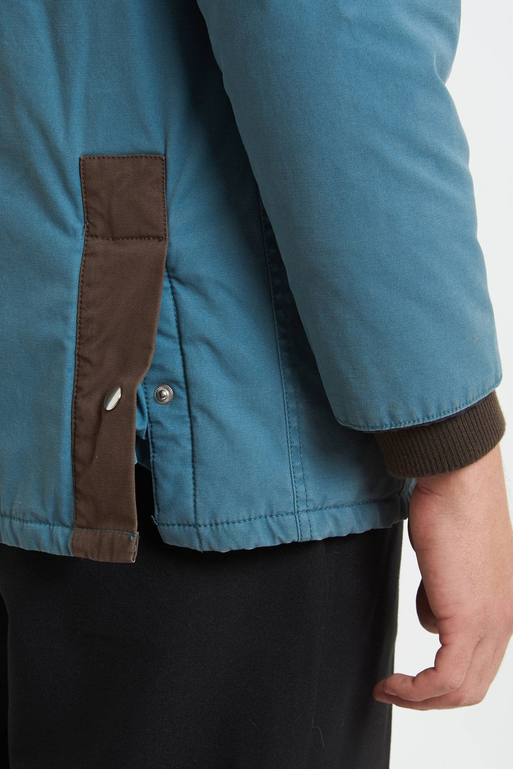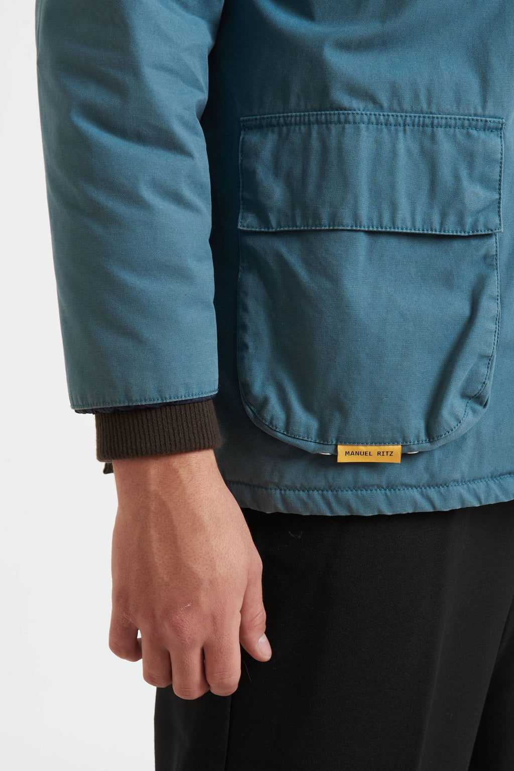 Dotato di chiusura con bottoni e cerniera, il capo garantisce una protezione ottimale dal vento, mentre le due tasche a scomparsa sul petto e le due tasche inferiori a goccia con pattina offrono praticità e capienza senza rinunciare all’eleganza.