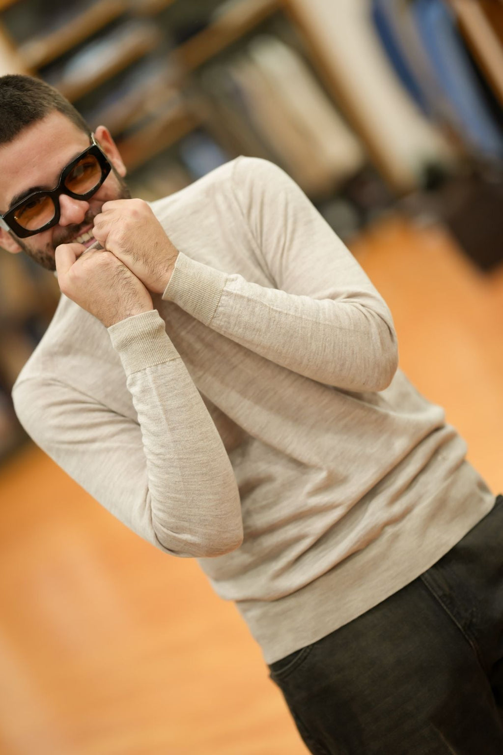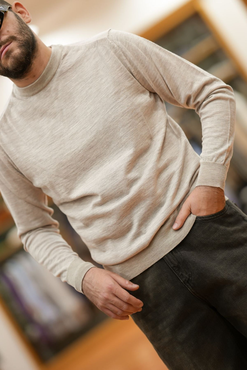 Classica e raffinata, questa maglia girocollo da uomo è caratterizzata da ricamo del logo tono su tono e finiture a costine su collo, polsi e fondo, perfetta per look casual eleganti o da abbinare a giacche e cappotti.