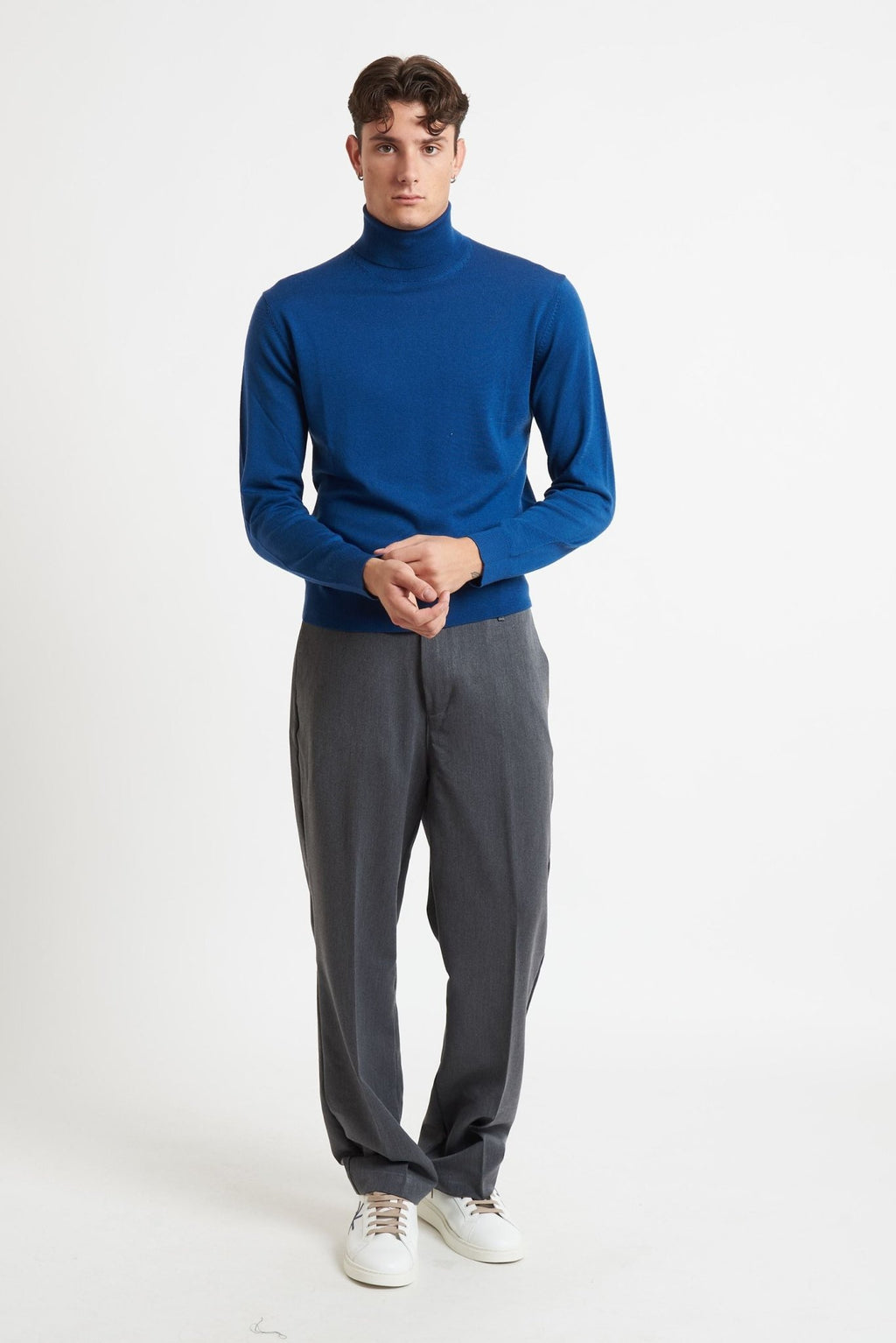 Aggiungi eleganza e calore ai tuoi outfit invernali con questa maglia dolcevita da uomo, realizzata interamente in 100% lana. Il design a collo alto garantisce protezione dal freddo, mentre la lavorazione fine e morbida della lana assicura comfort e vestibilità perfetta.