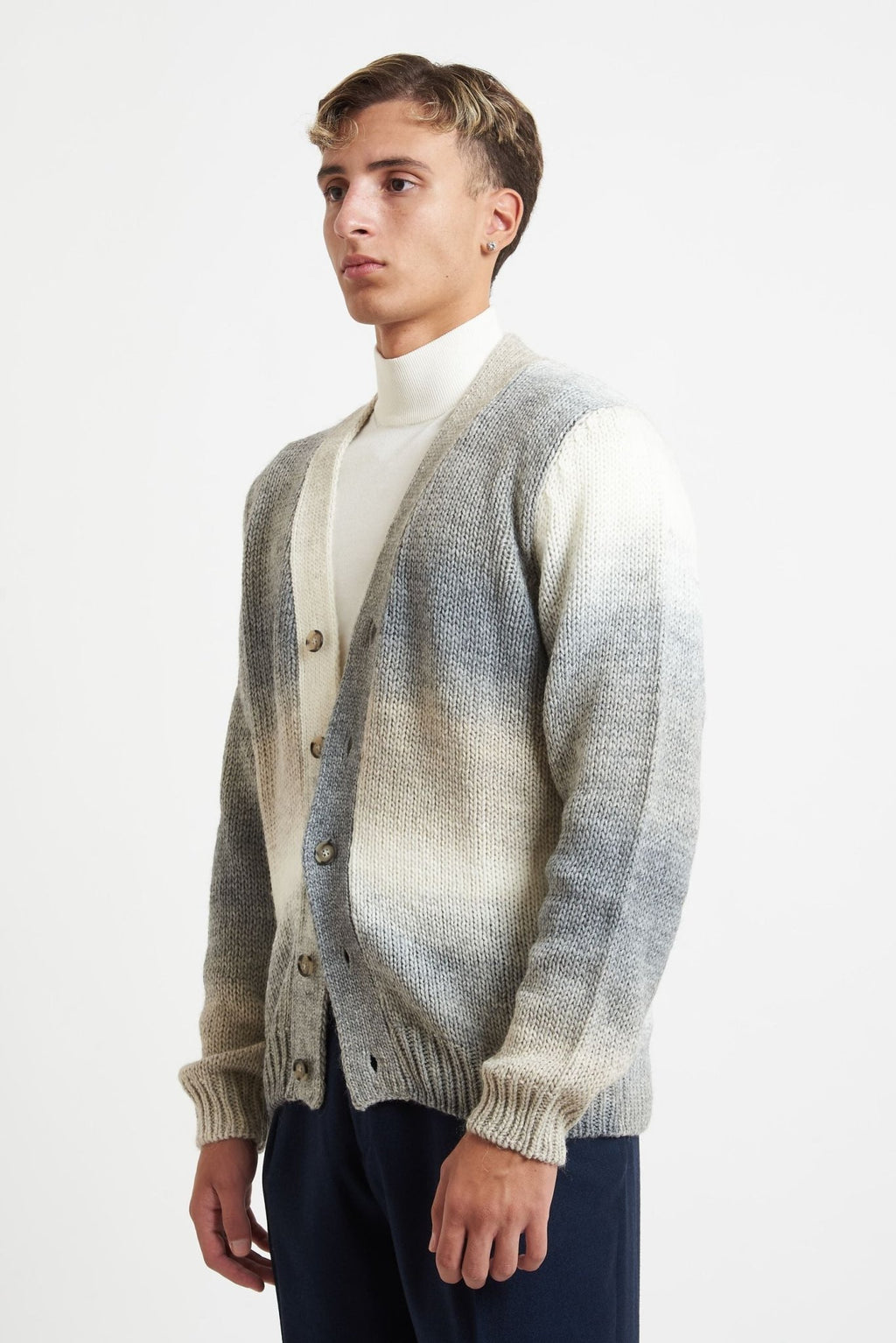 Realizzato in morbido misto fibre acriliche, lana e alpaca (75% fibra acrilica, 15% lana, 10% alpaca), questo cardigan offre calore, morbidezza e leggerezza, perfetto da indossare da solo o come capo a strati durante la stagione fredda.