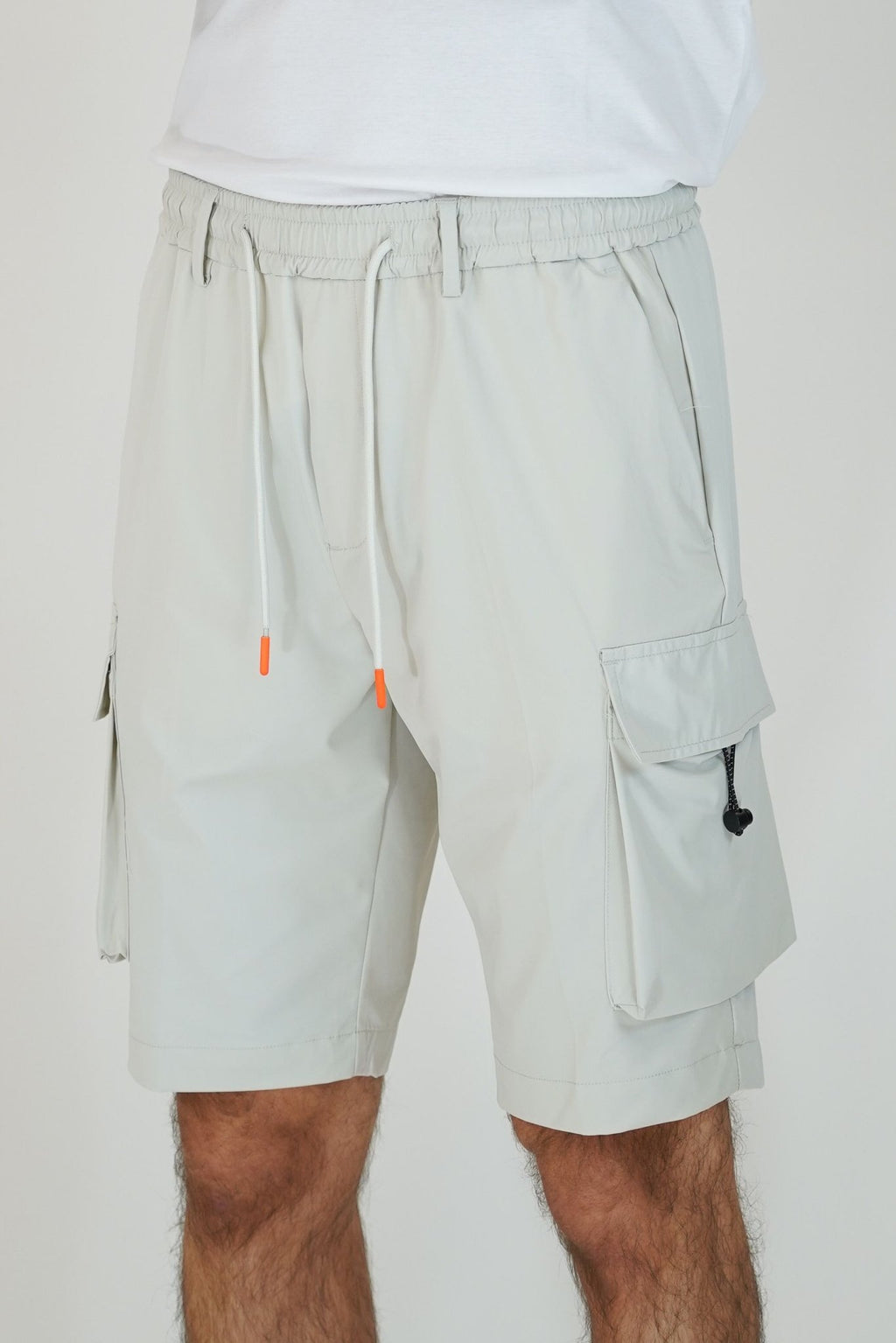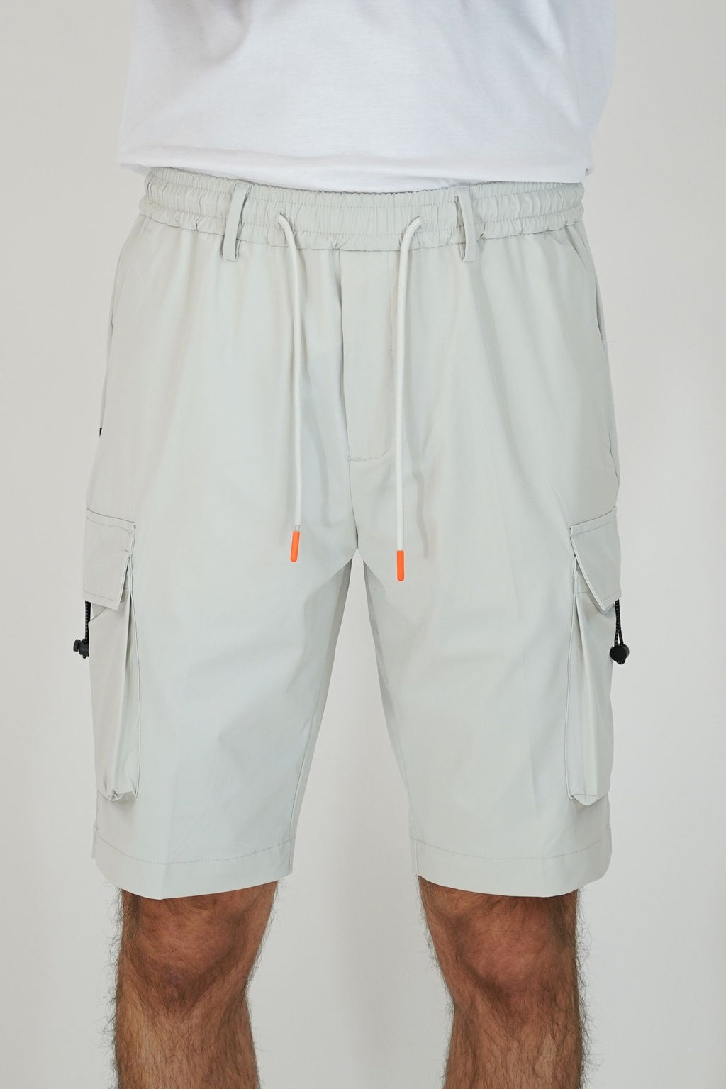 Bermuda con elastico e laccio punto vita, con tasca america e tascone laterale e con due tasche a filo sul retro. tech hub