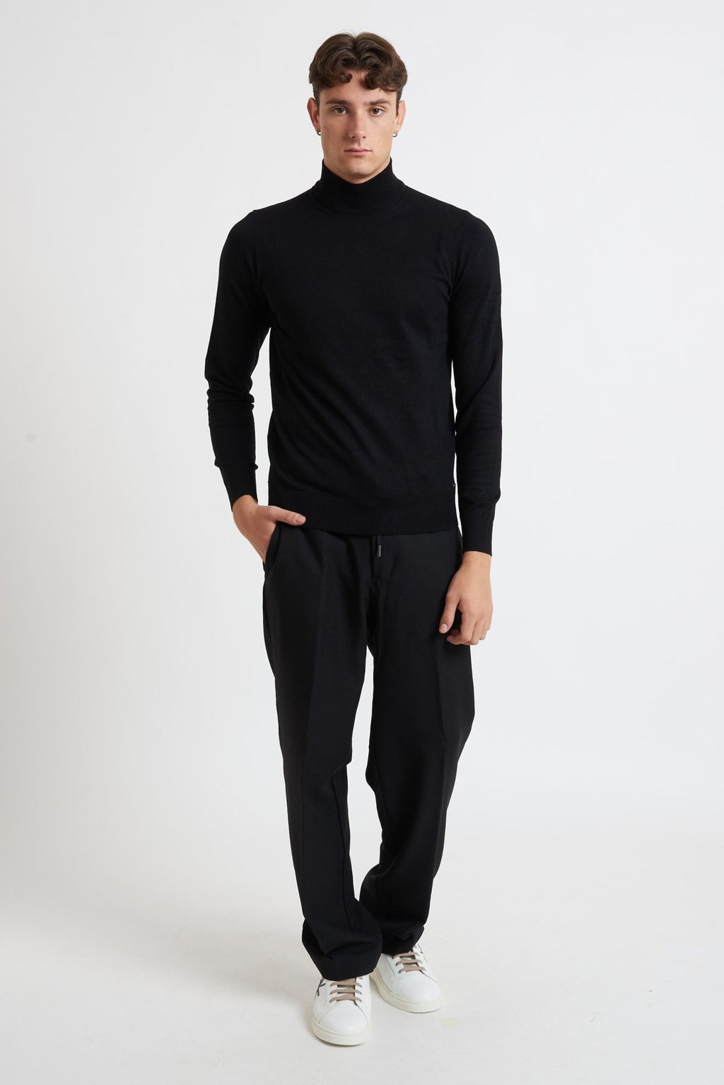 Un capo versatile e confortevole, questa maglia da uomo a mezzocollo si distingue per il design basic, perfetto da indossare da sola o a strati in look casual o smart casual.