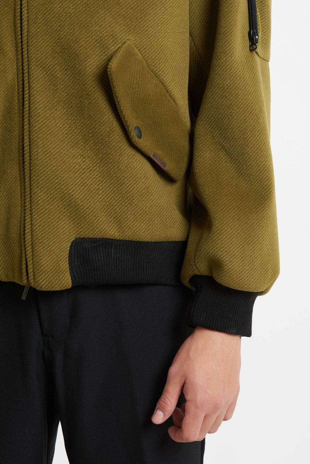 Il design presenta tasca frontale con pattina, tasca con cerniera sulla manica, tasca a filo sul petto e collo, polsi e fondo elasticizzati neri, per un effetto moderno e curato nei dettagli.