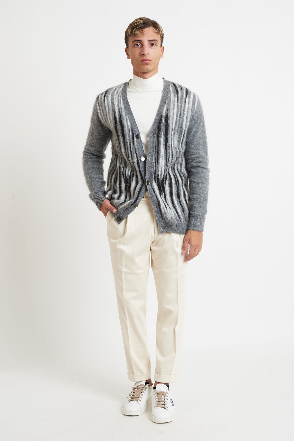 Morbido, caldo e raffinato, questo cardigan con collo a V è un capo essenziale per chi ama l’eleganza discreta e il comfort quotidiano.Realizzato in un pregiato mix di mohair, lana, poliammide e acrilico, offre una texture soffice e avvolgente, ideale per la stagione autunno-inverno.