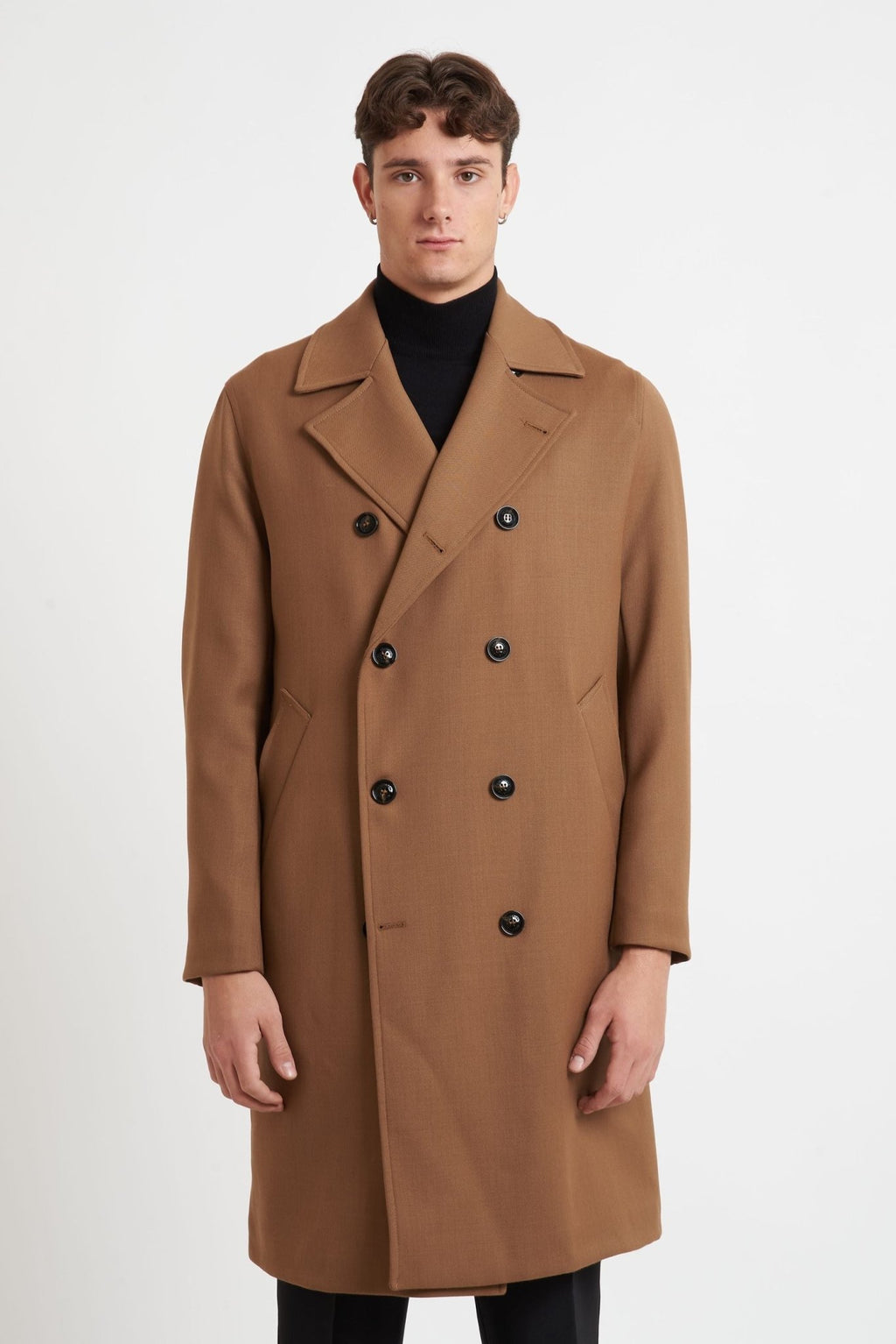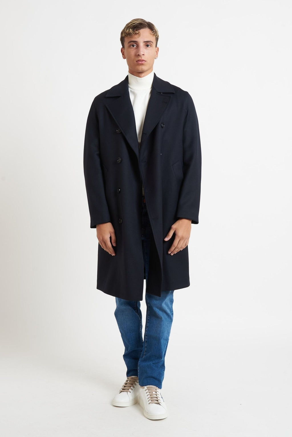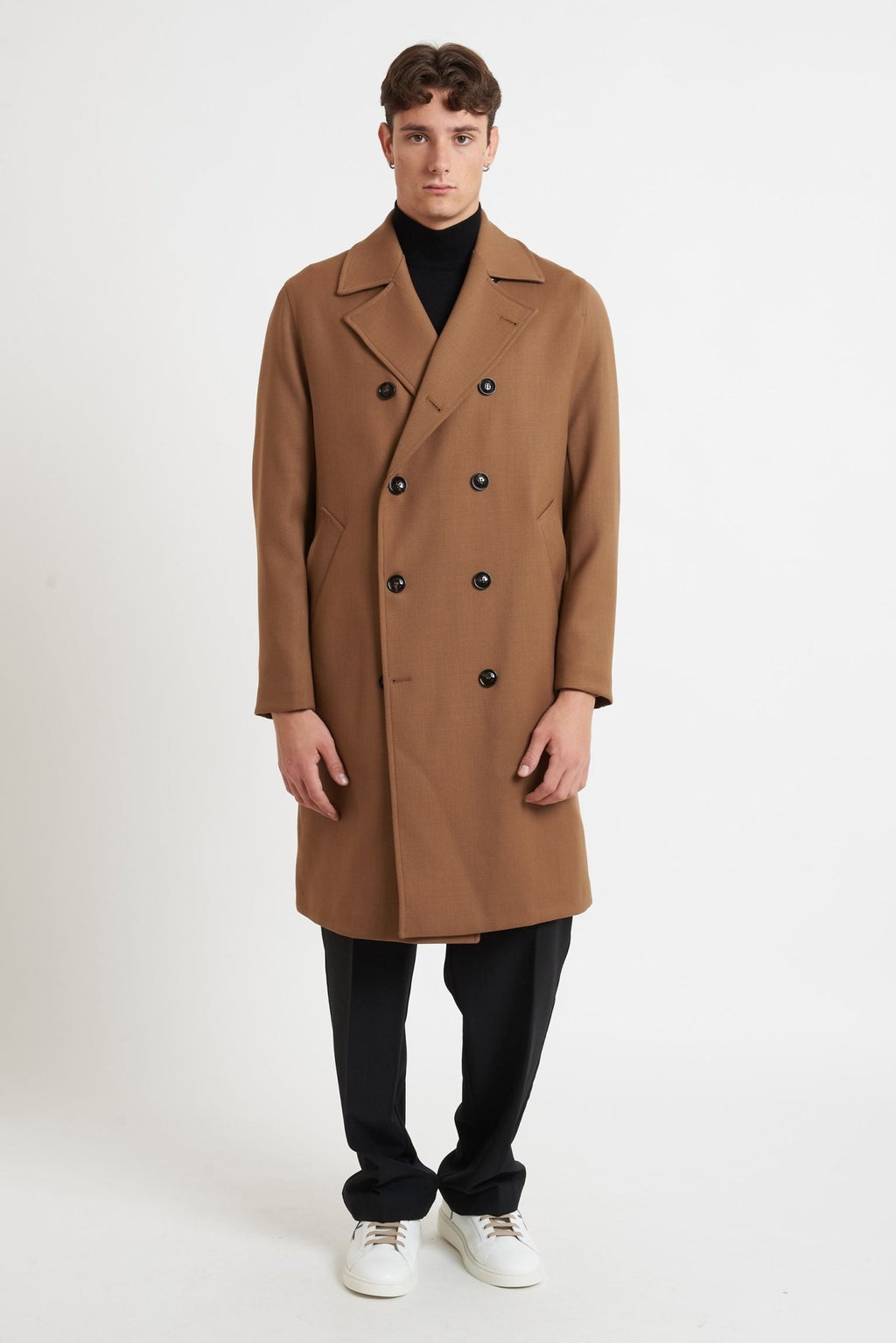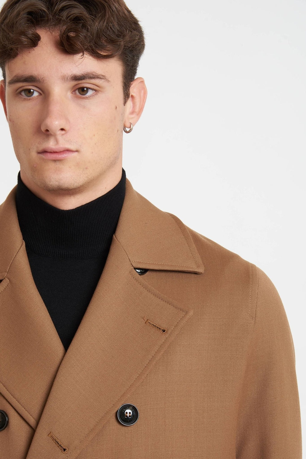 Eleganza classica e stile raffinato definiscono questo cappottino foderato doppiopetto da uomo, caratterizzato da otto bottoni, ampio rever e tasche oblique a filo per un design funzionale e sofisticato.
