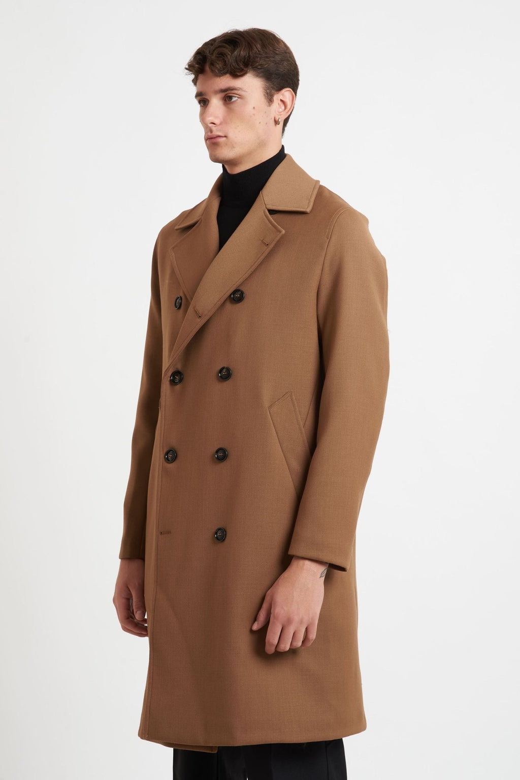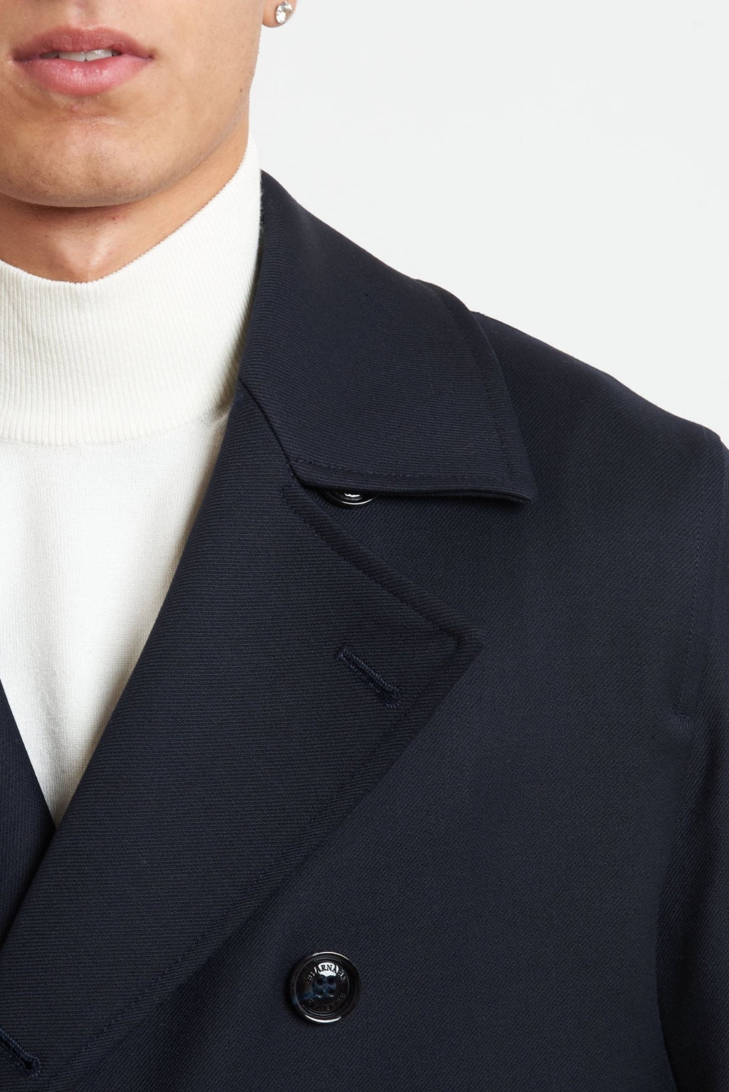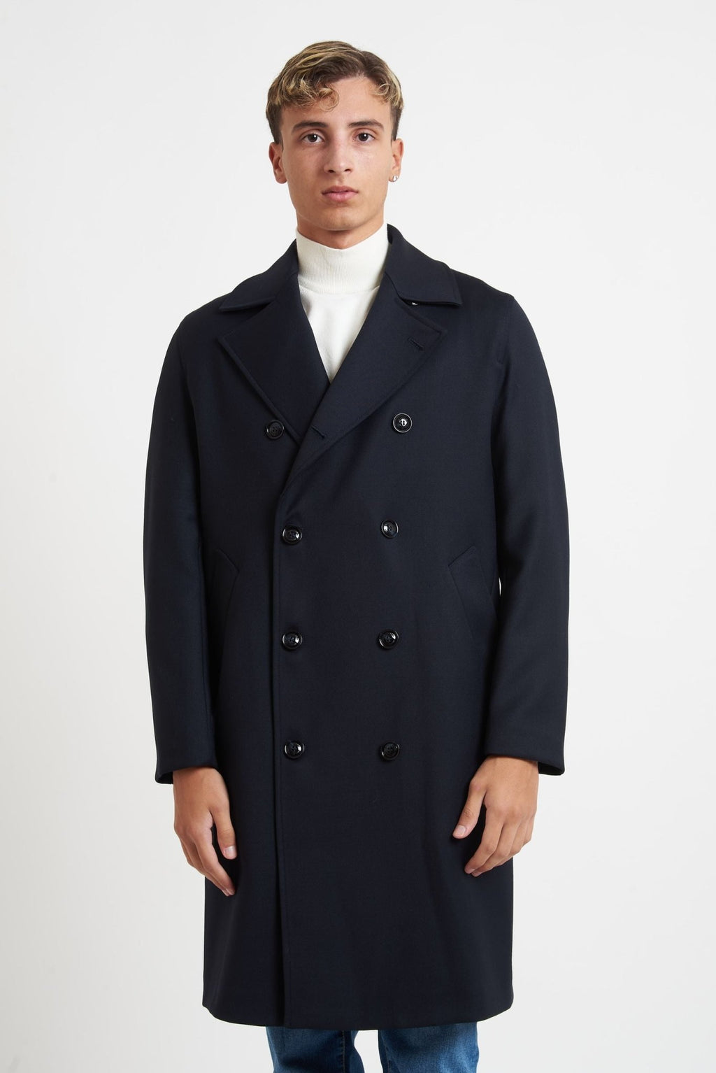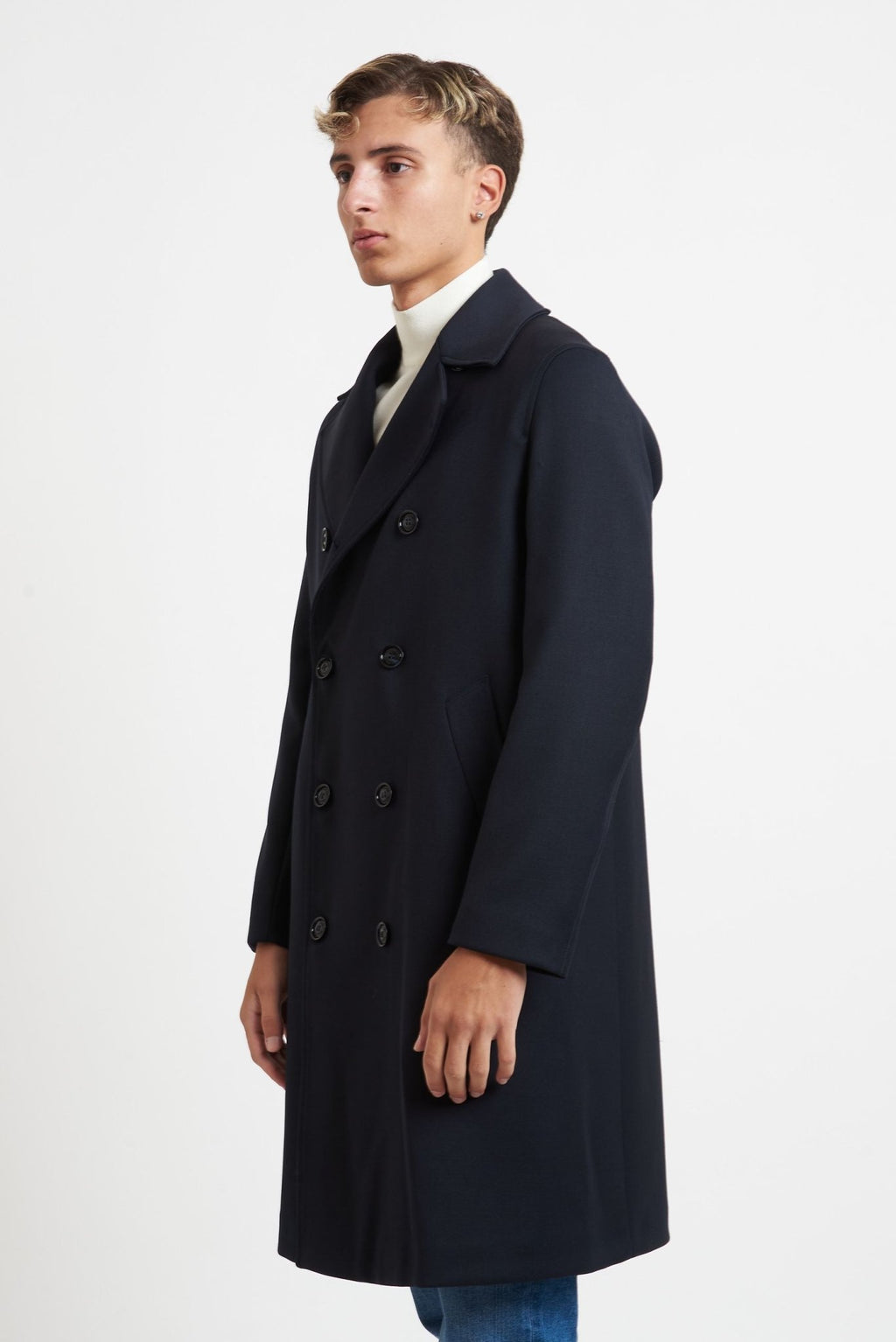 Eleganza classica e stile raffinato definiscono questo cappottino foderato doppiopetto da uomo, caratterizzato da otto bottoni, ampio rever e tasche oblique a filo per un design funzionale e sofisticato.