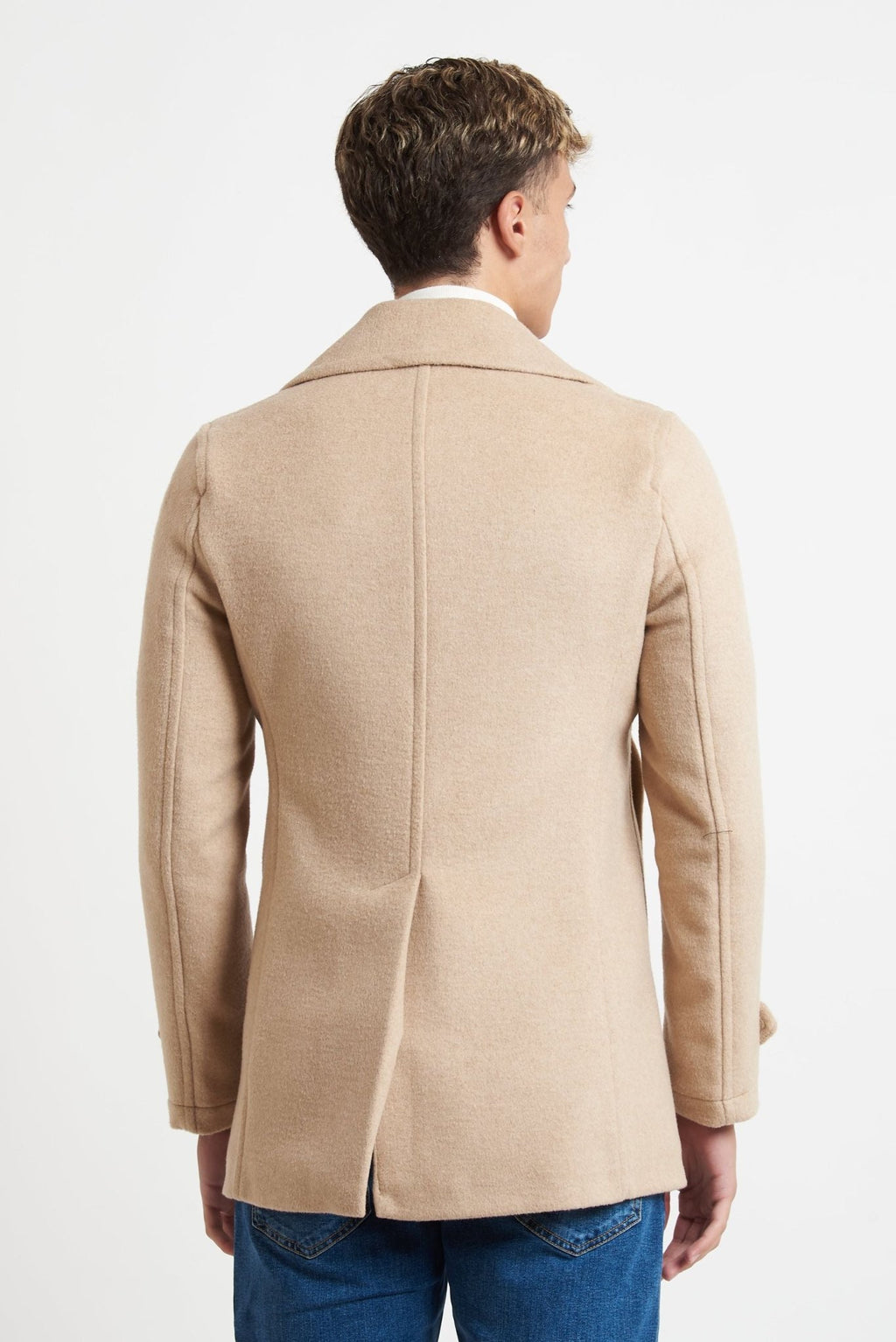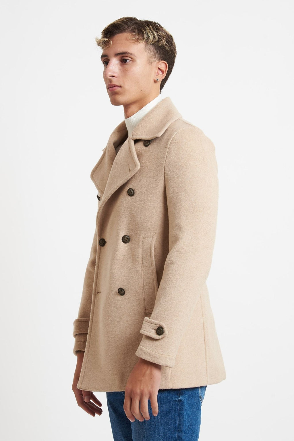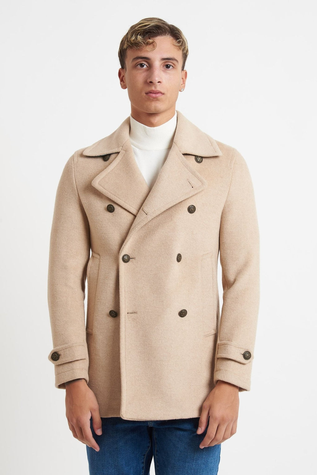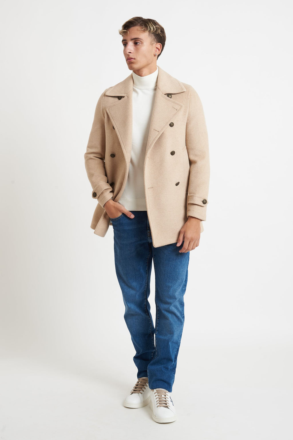 Classico e raffinato, questo cappotto mezza lunghezza doppiopetto da uomo unisce eleganza sartoriale e comfort per la stagione fredda.Realizzato in tessuto misto lana e poliestere, offre calore, resistenza e una vestibilità confortevole.