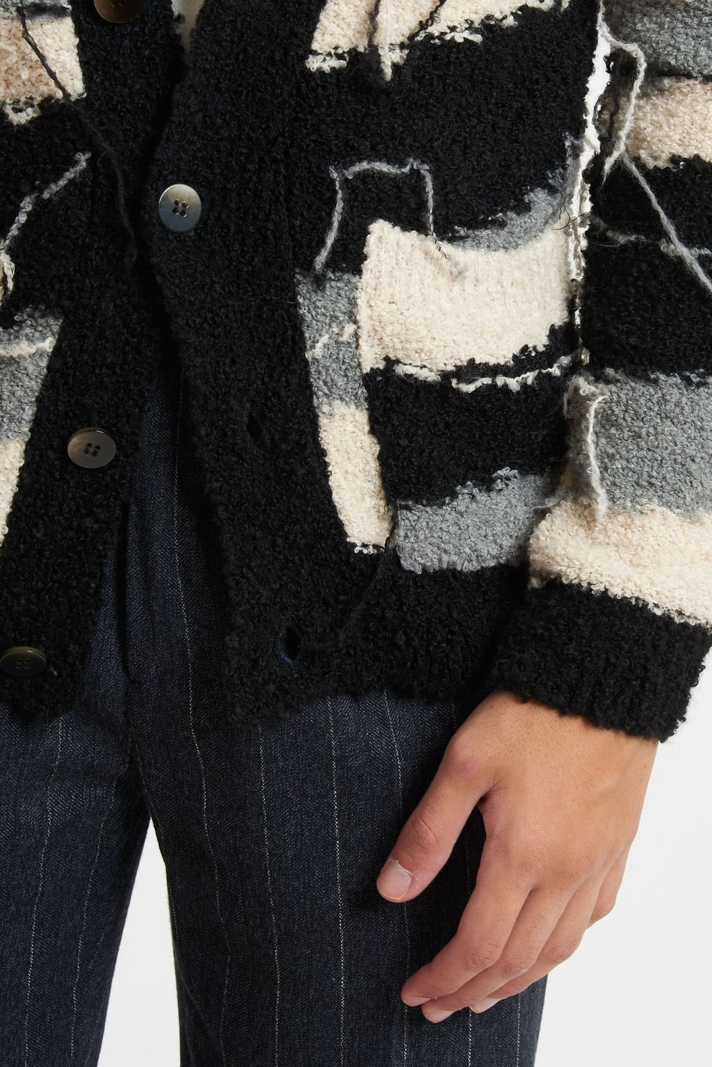 Modello: Cardigan a 5 bottoni con riga orizzontale effetto sfilato