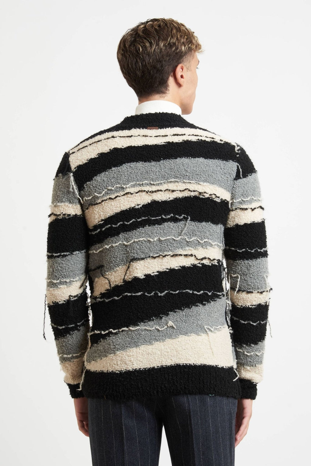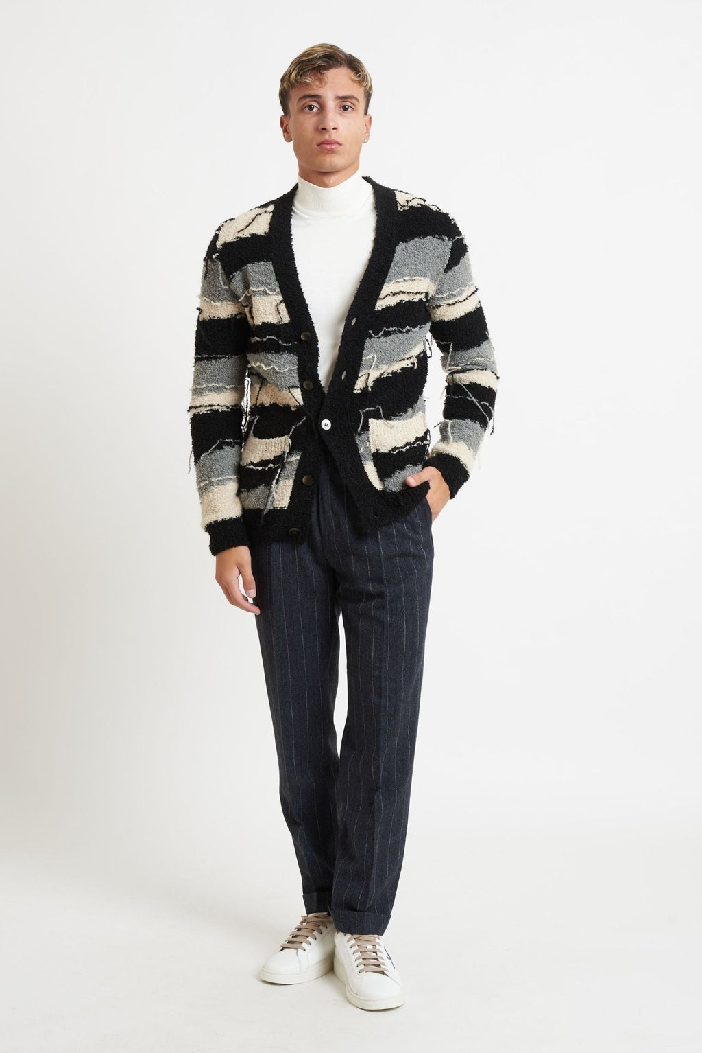 Moderno e distintivo, questo cardigan a cinque bottoni unisce stile contemporaneo e comfort, ideale per look casual chic o smart casual.Realizzato in tessuto misto 64% lana, 24% acrilico e 12% nylon, garantisce calore, morbidezza e una vestibilità confortevole.